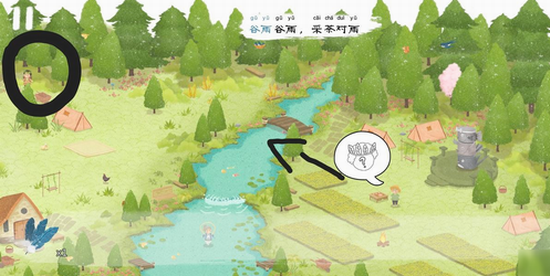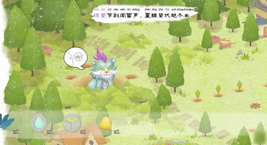 惊蛰在左上角中间那个洞(点几下会出来),然后拿旁边的梨子给他吃