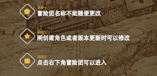 3、老玩家要等版本有重大更新的时候才能重新设置冒险团名称,否则是无法修改的。