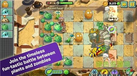 僵尸们回来了,是时候表演你真正的技术了!你必须争分夺秒,积累强大的新植物军队,保护你的大脑,打败僵尸!这是一个看似简单实则极富策略性的小游戏。可怕的僵尸即将入侵你家,你唯一的防御方式就是您栽种的植物,触屏操控你的植物,合理布局来防护你的庭院,打败可怕的僵尸。在圣诞版本中,巨人僵尸伽刚特尔回归,在每个场景都会客串出现。免费手游网小编提供的这款植物大战僵尸2侏罗纪是植物大战僵尸系列最新的一个版本,游戏地图来到侏罗纪的沼泽公园,侏罗纪时代的僵尸也复活了,各种僵尸恐龙苏醒,超炫酷的战斗场面设计!快来免费手游网下载体验吧!!