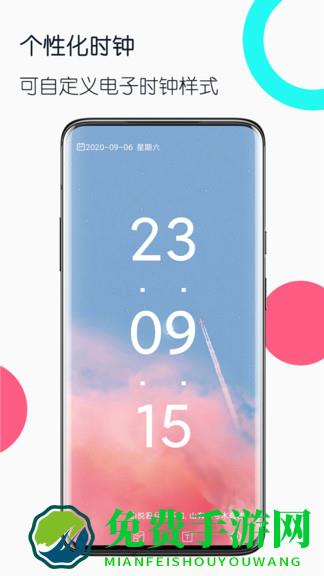 个性化时钟:通过软件可以将手机作为电子时钟使用,支持自定义电子时钟样式包括自定义字体,自定义字体颜色,自定义背景图等让您设计出个性化时钟;