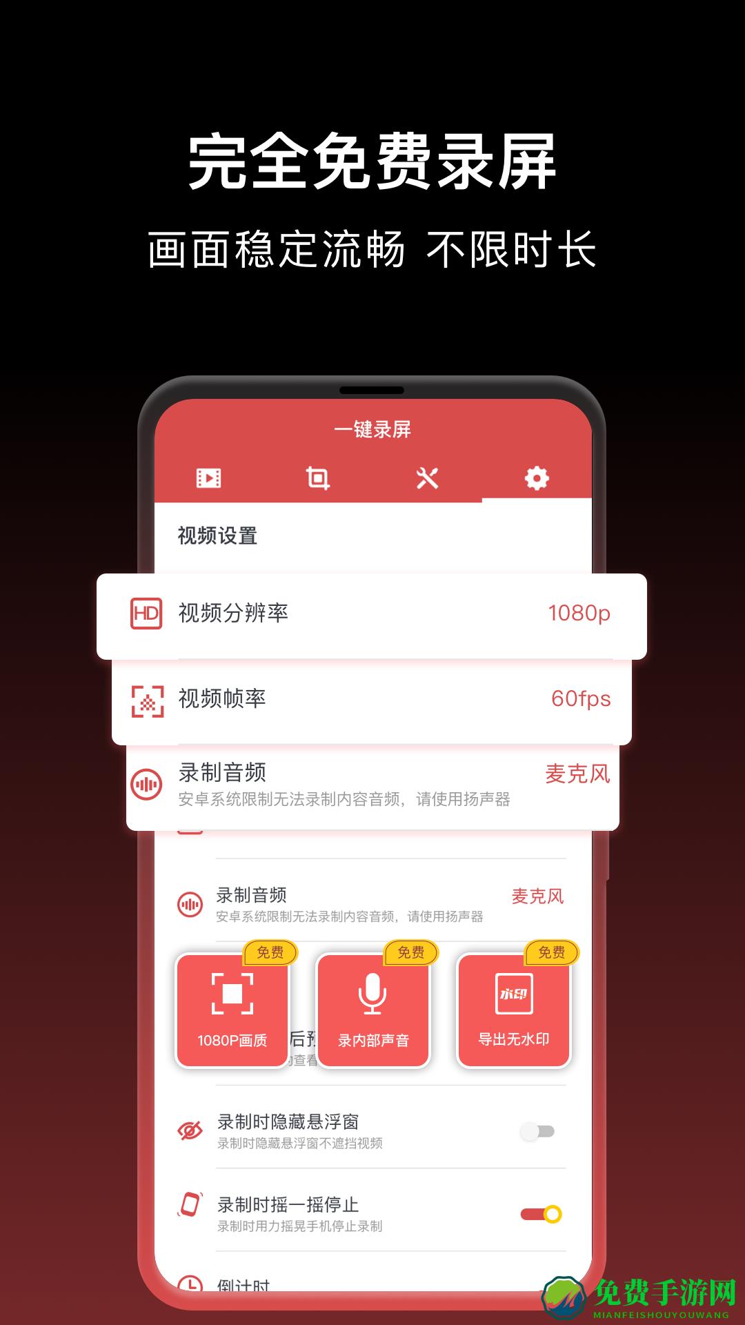 一键录屏软件手机版是一款手机智能录屏工具,录屏一键搞定,多重功能支持用户录制各个精彩的瞬间,同时还能够开启更多的智能功能,所有录制的片段亦可以进行编辑保存,需要的用户快来免费手游网下载吧!