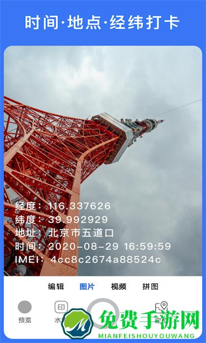 2、是一个时间地址经纬度工程水印相机,可以拍照片拍视频时直接加水印,也可以给本地照片视频加水印;