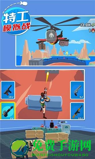 特工模拟战一款休闲益智类型的闯关射击手机游戏,游戏采用经典的3D画面作为游戏背景,以独特的射击枪战作为游戏的核心玩法。在游戏中,玩家需要消灭关卡中所有的敌人,击杀的越多,积分就越多,玩家还可以兑换更好的武器装备。