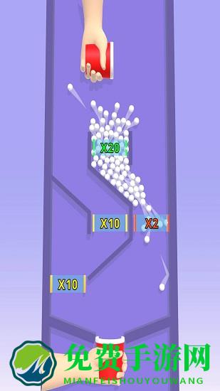 1、只需点击屏幕移动到指定的通道即可,小球在遵循物理特性下落的过程中会自动经过翻倍杠杆从而生成大量的弹跳球,最后落到关底的弹跳球数量不仅可以帮助玩家积累星级,也会提升玩家在世界排行榜上的名次