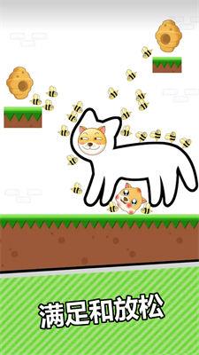 一款烧脑的闯关游戏,将狗头圈起来,或者将蜜蜂围起来,总之不要让蜜蜂扎到狗头即可顺利过关,充分利用地图上的场景去构建图案,你的线只能挡住蜜蜂其他的东西都是挡不住的,也不能阻止狗狗掉入岩浆,你需要把狗狗固定在一个方块上。