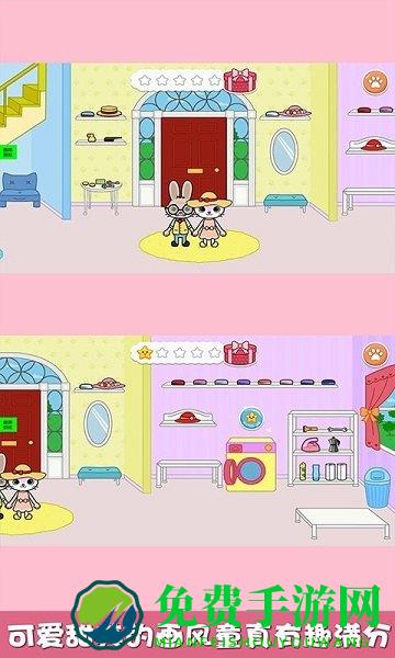 猜猜兔子躲哪了模拟宝宝熟悉的家庭环境,还原家中的场景,包括客厅,厨房,卧室和花园。让宝宝从熟悉的部分开始!这里没有规则的约束和限制,在一个充满趣味的家里不同区域:客厅、厨房、儿童房、父母的房间、一间浴室,尽情探索,开动脑筋,动动小手指,在不经意的地方可能会发现意外惊喜!设施齐备的厨房,里面有冰箱,里面放满了食物,我们所有的朋友都可以吃。包括他们喜欢的水果,冰淇淋,尤其是胡萝卜!在烤箱中制作美味的热苹果派。和兔兔家人一起看电视,体验美妙的音乐!和兄弟姐妹们在儿童床上玩闹!楼上的兔子还可以在热肥皂泡浴中放松身心,或在就寝前刷牙。物品之间的有趣互动和反应等着你来发现!家里还藏有好几颗星星哦,快来和兔兔一起帮找回来吧!星星就隐藏在家里的各个角落,相信聪明的你一定不会错过每一颗星星的!收集隐藏的星星可以获得特别奖品!适合家长陪同孩子一起挑战,在游戏过程中获得知识、开发智力、促进亲子关系。