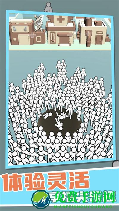 人满为患游戏是一款有趣的吞噬游戏,玩家需要控制黑洞去到人群密集的地方进行吞噬,游戏采用清新简约的设计风格,游戏玩法也十分简单,玩家可以轻松上手。