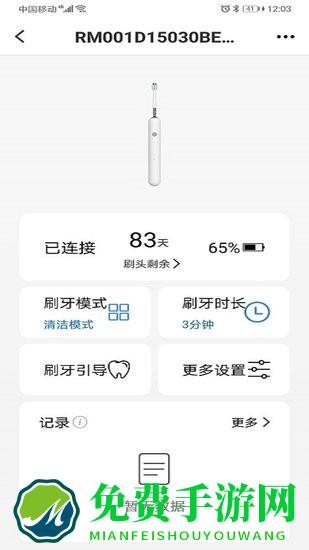 本软件实现了蓝牙个人护理设备和罗曼护理app的交互,显示设备的信息,如电池电量、刷头剩余天数、牙刷的工作模式设置以及刷牙记录。
