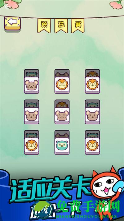 -游戏采用经典的三连消玩法,滑动手指将三个相同的动物相连即可完成消除;