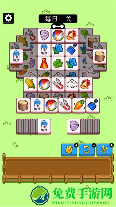 游戏中会有非常多的方块,每个方块上都会有一个图案,三个相同图案即可消除;
