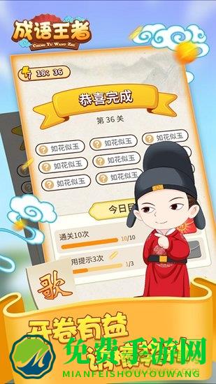 3、以成语为题材打造的答题类闯关游戏,考验你的知识;