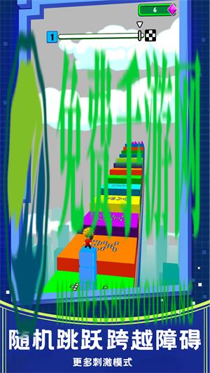 1、滑动手指来控制人物角色进行左右移动,来收集道路上的方块;