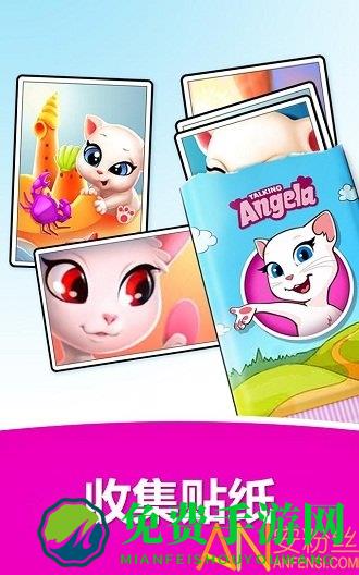 收集贴纸:寻找并收集数百张虚拟贴纸,每张都印有安吉拉的全新靓照,把它们都收藏到专属于你的超级特别专辑里吧。你甚至还能跟其他玩家相互出售贴纸来完成整本专辑。
