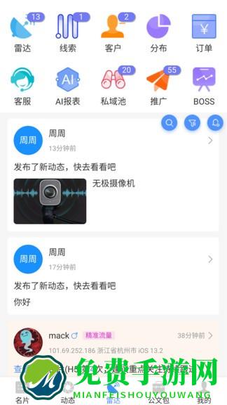 AI名片营销系统,多维度社交名片打造专业形象吸引客户,9大营销物料实现品牌生意大曝光,智能雷达洞悉客户行为轨迹,SCRM客户管理系统对每个客户进行跟进和标签,实现颗粒级管理和运营。