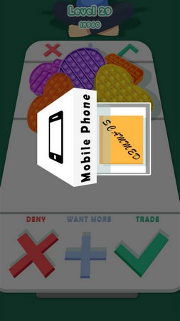 指尖玩具交易安卓破解版是自由好玩的玩具交易手游,指尖玩具交易安卓破解版中玩家需要猜出对手的心理预期,通过较低的玩具价格获取金币。所有物品都没有明确的价格标示,玩家需要通过屏幕中的各种提示进行评测和预估。卡通精美的画面,轻松解压的娱乐方式,游戏中不同模式的交易难度不同,赢得游戏后获得的奖励也大不相同。