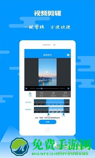 视频剪辑是一款专业的视频制作、视频剪辑、视频美化工具,在这里你可以将你创新大胆的idea尽情展现,用手机也能做出影视级效果,你就是自己的导演。支持安卓5.0以上,无需root,支持高清视频导出,全面适配优酷、腾讯、爱奇艺、乐视等视频,视频爱好者的集聚地,你还不来玩吗?