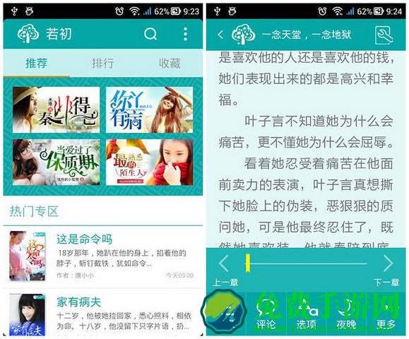 若初文学app是若初文学网官方手机客户端,用户安装后,通过手机就能阅读该网站的海量女性精品网络小说,整合了高干,宅斗,宫斗,总裁,青春,都市,游戏,同人等网络热搜小说内容,是看小说必备神器!快来免费手游网下载体验吧!