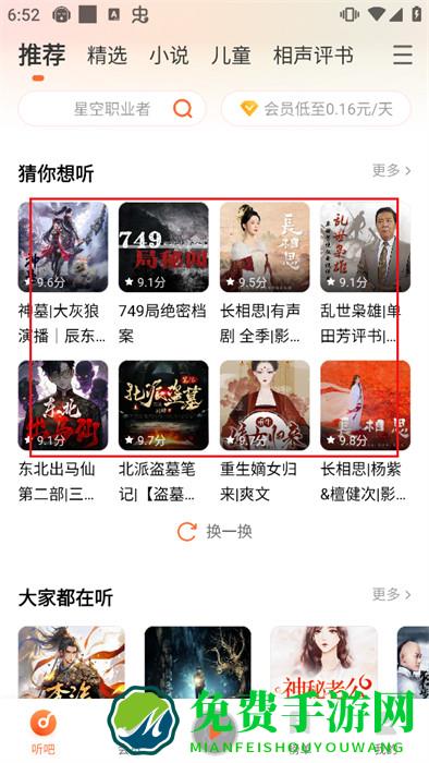 2、随后,进入到首页就能看到丰富的书本,随手点击都能免费收听;