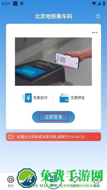2、直接手机上就可以随时乘坐地铁,随时随地便捷的乘车服务,但是在乘车之前需要先点击【立即登录】才可以解锁自己的乘车账号;