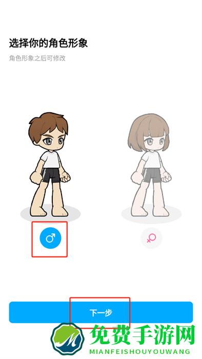 1、进入到游戏之中后,玩家首先需要对自己的角色进行性别的选择,选择好之后,需要点击【下一步】按钮;