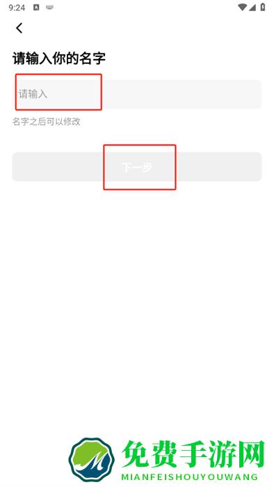 2、此时玩家将会进入到名字的设立界面,可以为自己的角色取一个合适且又独特的名字,取好后同样需要点击【下一步】按钮;