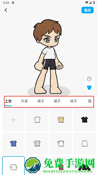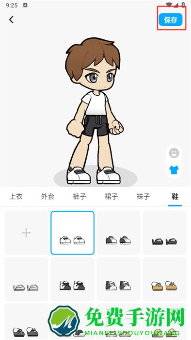 5、此时玩家只需要将自己设置好的角色进行保存即可,【保存】按钮在屏幕的右上角。