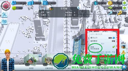 工业和商业建筑,前者提供制造原材料;后者利用前者的产品制造商品。这两类建筑的产物都可以用来完成居民区的房屋升级、货运和天灾任务,或用来进行城市贸易以换取模拟币。