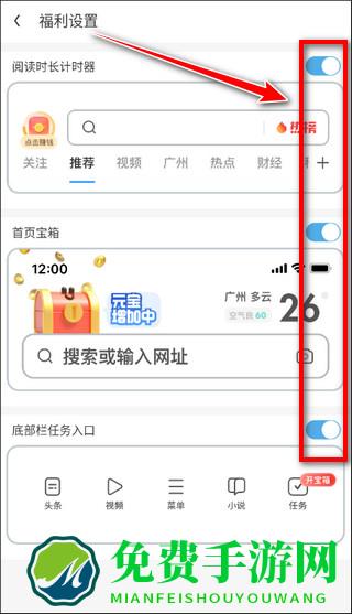 是真的,只需要打开福利设置,点开阅读时长、首页宝箱、底部栏的任务入口,通过这些福利任务累积元宝就能提现赚钱。
