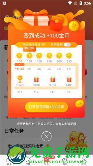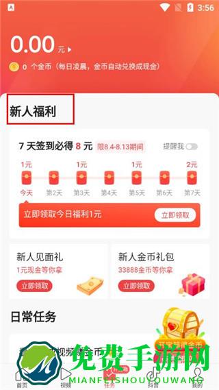 极速版:有签到看新闻等任务要求,每天完成赚取金币可以提现,首次安装需要填写今日头条邀请码,即可立即领取1元邀请码红包可提现。