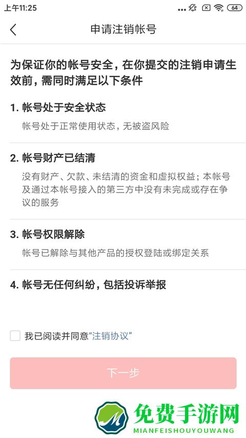 5、申请注销账号,为了保护你的账号安全,需要满足下列条件。