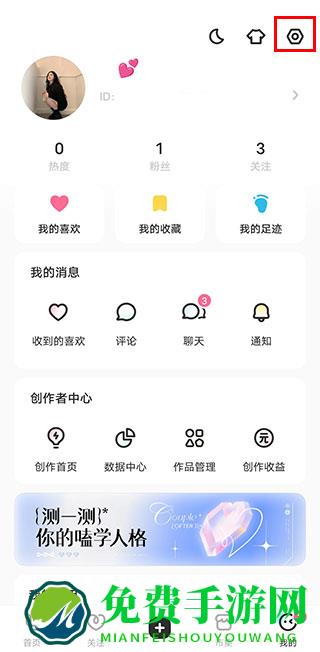 在“我的”页面,点击右上角设置,选择“青少年模式”,点击开启,然后输入密码即可。