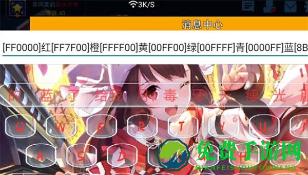 4、这里只要在字面前加入相对应的颜色代码,就可以打出相对应的字体,比如打出一个红色的“红”字,那么就在前面加[FF0000](其余类推),如下图所示: