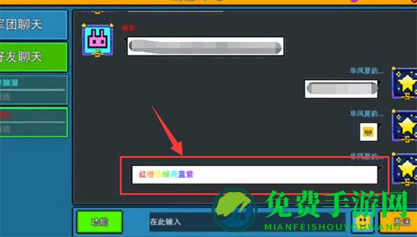 《像素射击》游戏中打彩色字体需要使用相对应的色彩代码,具体使用方法如下: