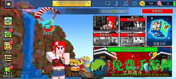 1、打开像素射击游戏首页左上角头像。