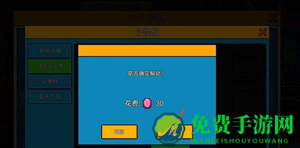 4、解锁自定义头像需要花费30币解锁。