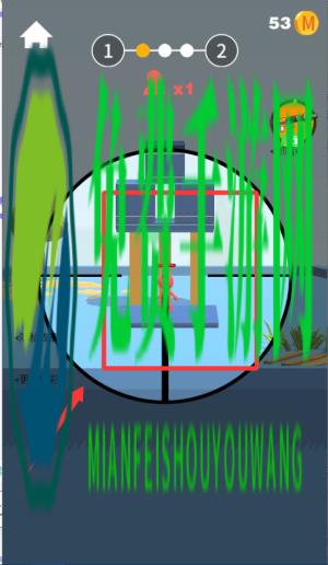 1、操控火柴人先熟悉操作,点击打开瞄准镜,松开后射击,注意目标运行轨迹。