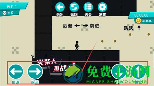 1、基础操作通过虚拟按键控制火柴人移动跳跃,玩家需要灵活组合前进、后退、跳跃、下蹲等动作来突破各种陷阱。