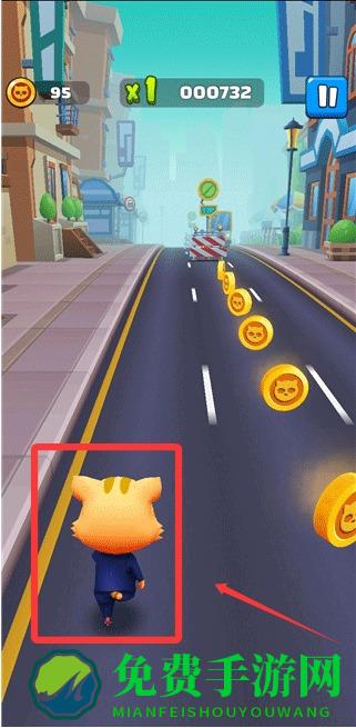 1、游戏中小猫将自动奔跑,玩家通过左右滑动屏幕切换跑道,避开障碍并收集散落金币与礼盒,完成跑酷任务。