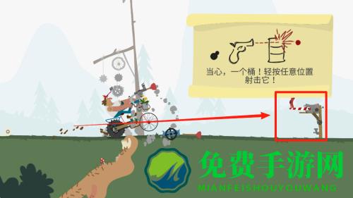 3、遇到路障时快速点击射击键,清除前方障碍保持骑行速度。