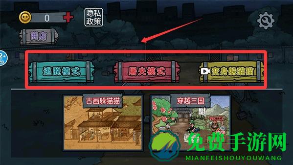 1、进入游戏后,进入主界面分别有三种模式可供选择。
