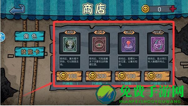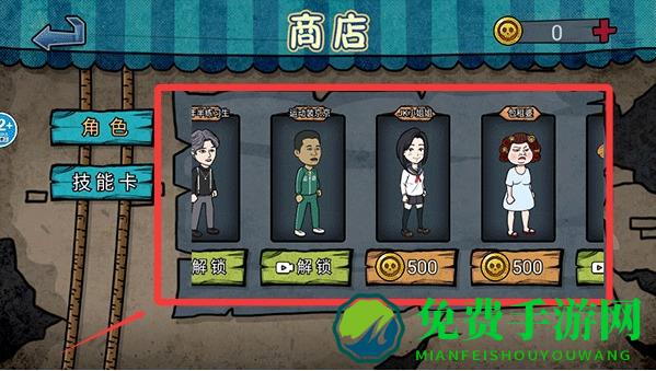 2、点击商店,可以购买各种角色,每个角色都有不同的技能。