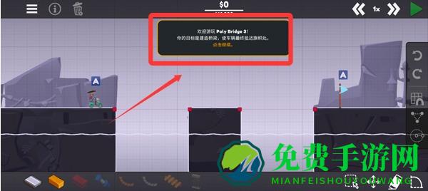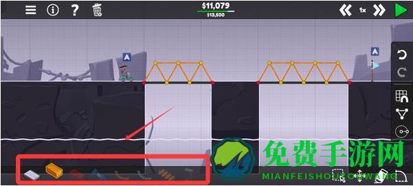 3、完成新手教程后就可以正式开始游戏了,我们需要使用左下方的材料搭建桥梁。