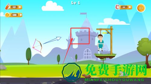 1、基础玩法是通过调整弓箭射击方向,精准射断绑住朋友的绳索,成功解救被困的朋友,完成关卡目标。