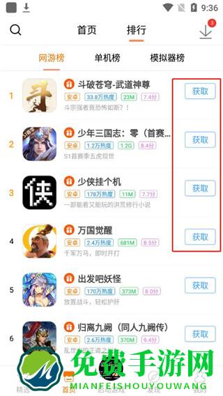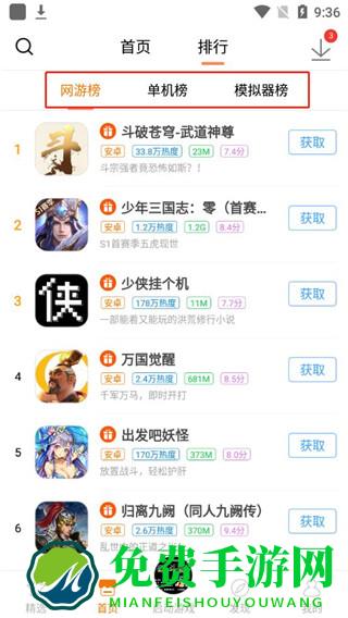 2、同时还罗列了网游榜、单机榜、模拟器榜;