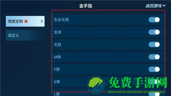 6、点击“金手指”后即可开始开启需要使用的选项;