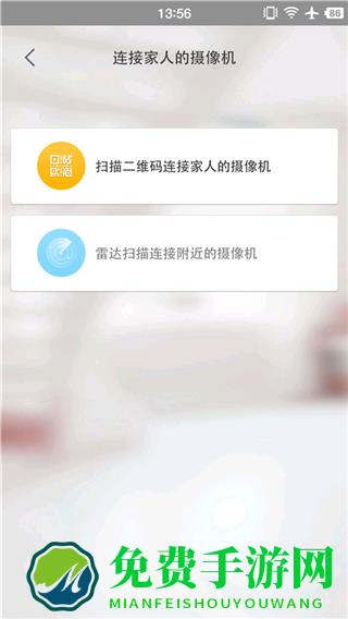 3、此时,家人点击APP首页右上角的“+”然后选择“连接家人的摄像机”——“扫描二维码连接家人的摄像机”;