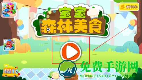 1、轻触屏幕中央开启游戏,带领宝宝进入森林美食派对。