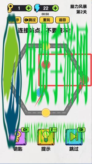 1、开始游戏后先观察不同颜色点的位置,思考最有效的画线路径,避免线路交叉。