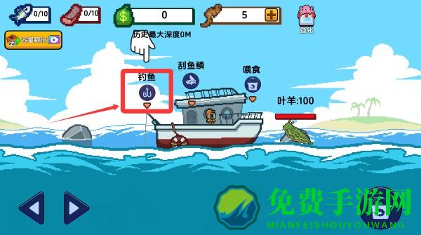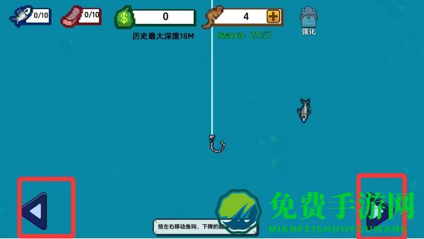 2、切到钓鱼界面,你可以左右移动鱼钩,下降的越深,鱼越大。