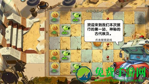 3、欢迎来到我们本次旅行的第一站,神秘的古代埃及,这里会交代游戏剧情,听说埃及法老有不计其数的宝物,说不定这里能找到不少好东西。好东西不知道,僵尸倒有不少,准备战斗吧;